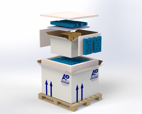 Isothermal packaging designed to maintain the cold chain in pharmaceutical products at all times during transport.